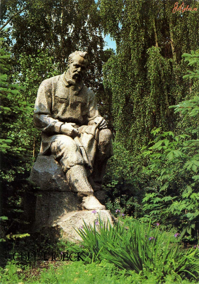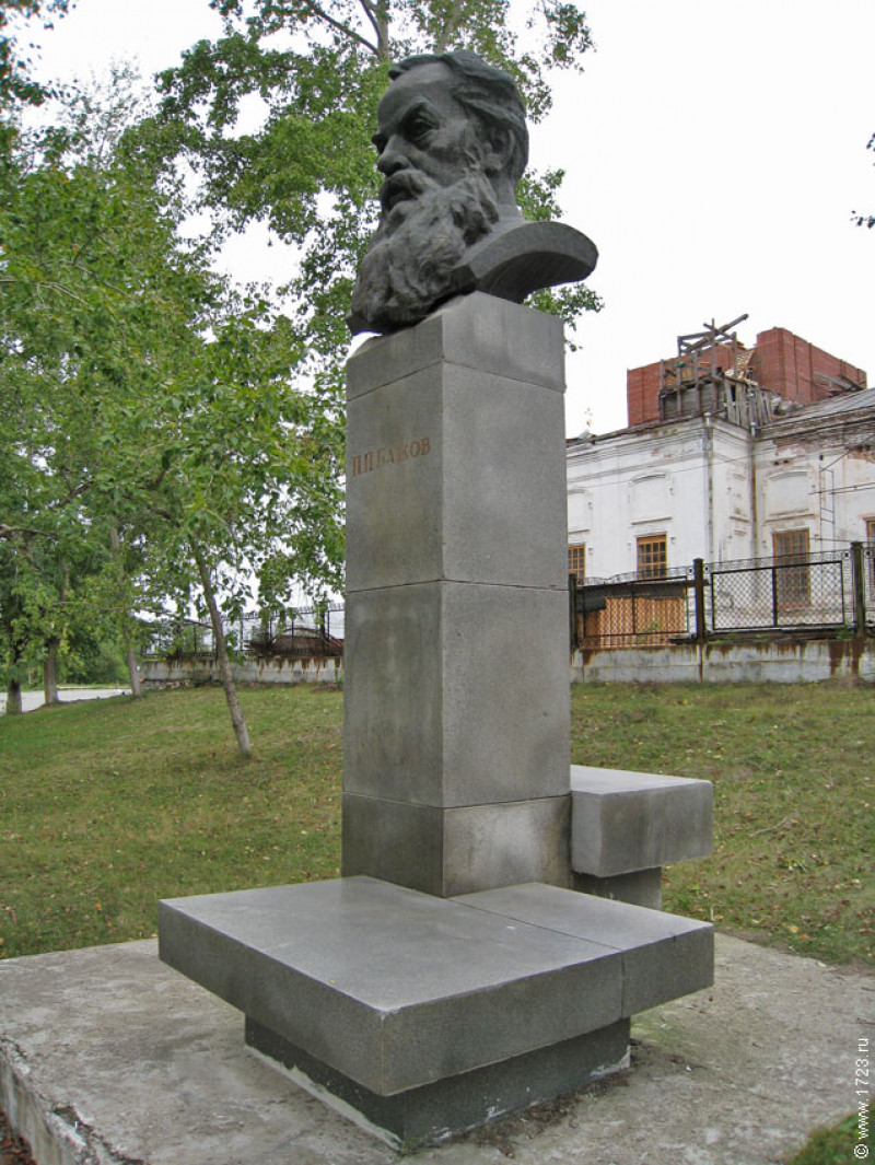 Первый памятник знаменитому уральскому писателю Павлу Петровичу Бажову (1879–1950) находится в Челябинской области. Он появился в 1954 году в поселке Бажово. Работа выпускника Ленинградской академии художеств Михаила Меньшикова, который с детства обожал уральские сказы Павла Бажова.